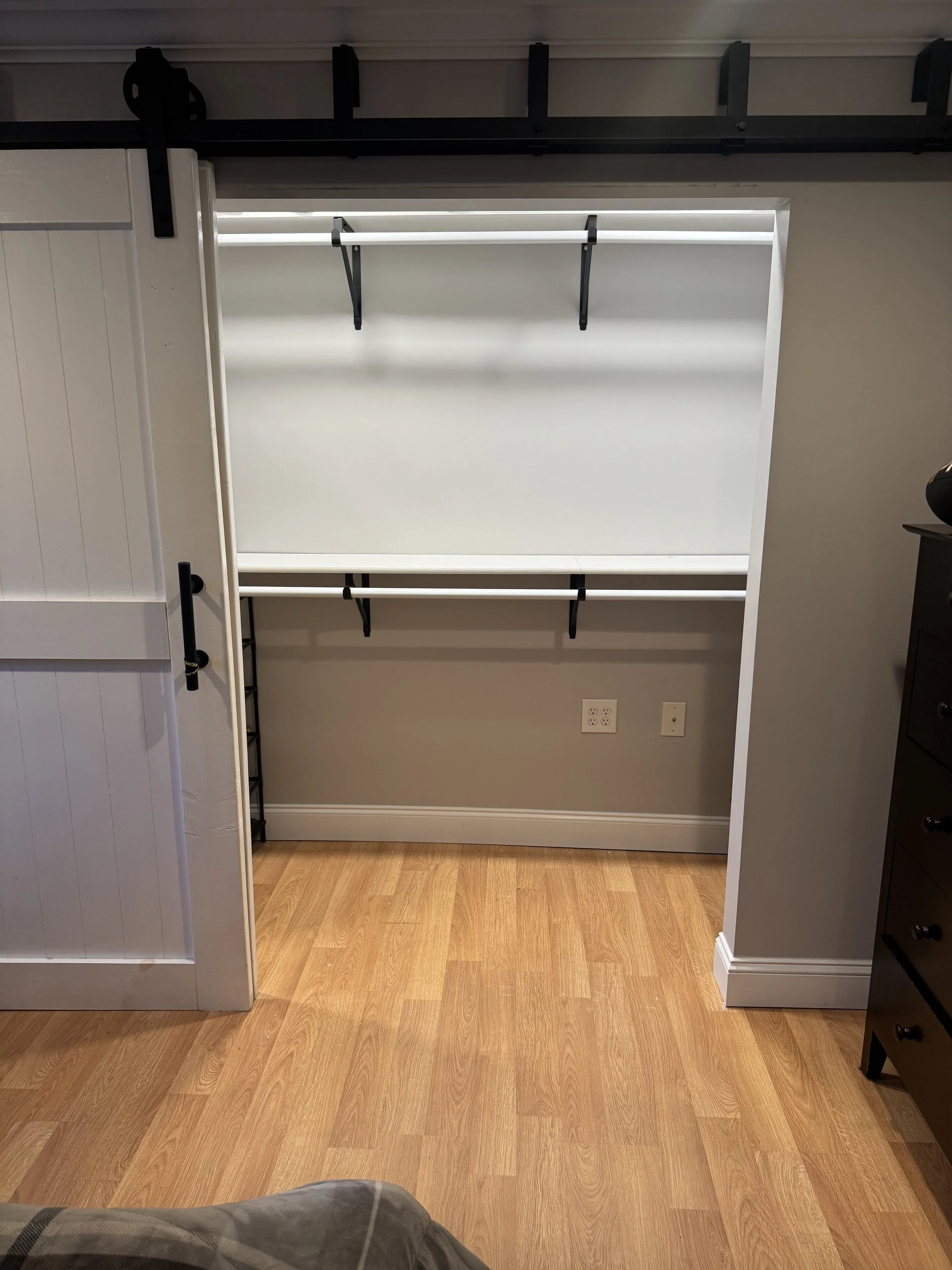 Add a custom built barn door to an existing closet or door opening. Or build an entire closet, add an organizer, and finish it with any type of door you would like!