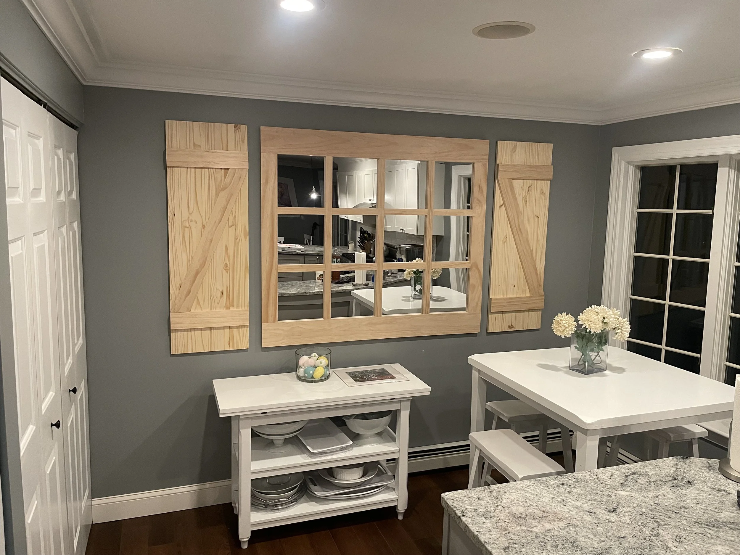 I built the frame and side accents custom size to fill the wall. Then I added the mirror.
